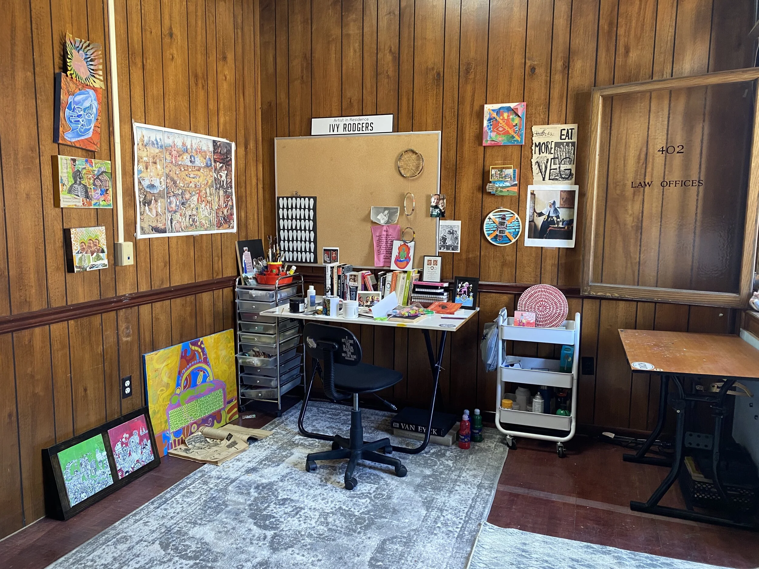 With our mission, and feedback from the community, in mind we opened The Grotto Creative in February 2021. It is on the fourth floor of the Rupp Building and contains four studios, three flex spaces, a fully equipped photo studio, and more.